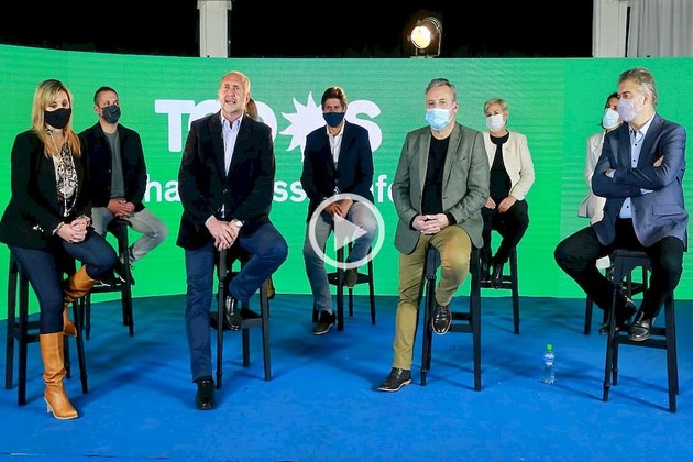 El acto contó con la participación en forma presencial de 9 precandidatos: Lewandowski, Sacnún y Mirabella y las precandidatas y precandidatos a la cámara baja Magalí Mastaler, Roly Santacroce, Stella Maris Clerici, María Haydee Maggio y Diego Mansilla. El resto siguió el evento en forma remota.