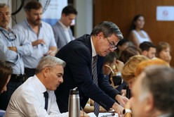 En el estrado estará acompañado por las autoridades de ambas cámaras: Cecilia Moreau, por Diputados, y Cristina Kirchner, por el Senado.