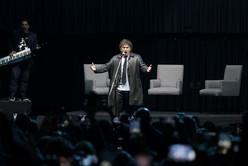 Mucha gente estaba intentando conseguir entradas para el ansiado evento, de a momentos en unísono cantando “Queremos verte Milei”. Dentro de la muchedumbre se encontraban Jonathan Roa, 33, y José Sánchez, 36, que se conocen desde sus infancias en Venezuela. Ambos lo siguen a Milei desde antes de la pandemia, diciendo que es quien les democratizó el acceso al conocimiento económico.