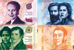 Tienen como protagonistas a María Eva Duarte de Perón ($100), Martín Miguel de Güemes y Juana Azurduy ($200), María Remedios del Valle y Manuel Belgrano ($500) y José de San Martín ($1.000).