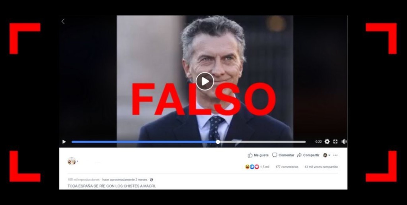 El video “fake” tuvo más de 200 mil reproducciones y fue compartido por más de 15 mil usuarios de Facebook, junto a frases como “¿Qué tiene Macri en la cabeza? A pocos meses de concluir su mandato, la TV extranjera lo ridiculiza” y “TODA ESPAÑA SE RÍE CON LOS CHISTES A MACRI” (sic). Algunas de las cuentas que lo difundieron en Facebook son “VolveremosCFK” y “La Argentina de Macri nunca más”. La desinformación circula también en Twitter y entre los usuarios de WhatsApp, que lo enviaron al número de Reverso (+54 9 11 3182-3655) para que sea verificada.