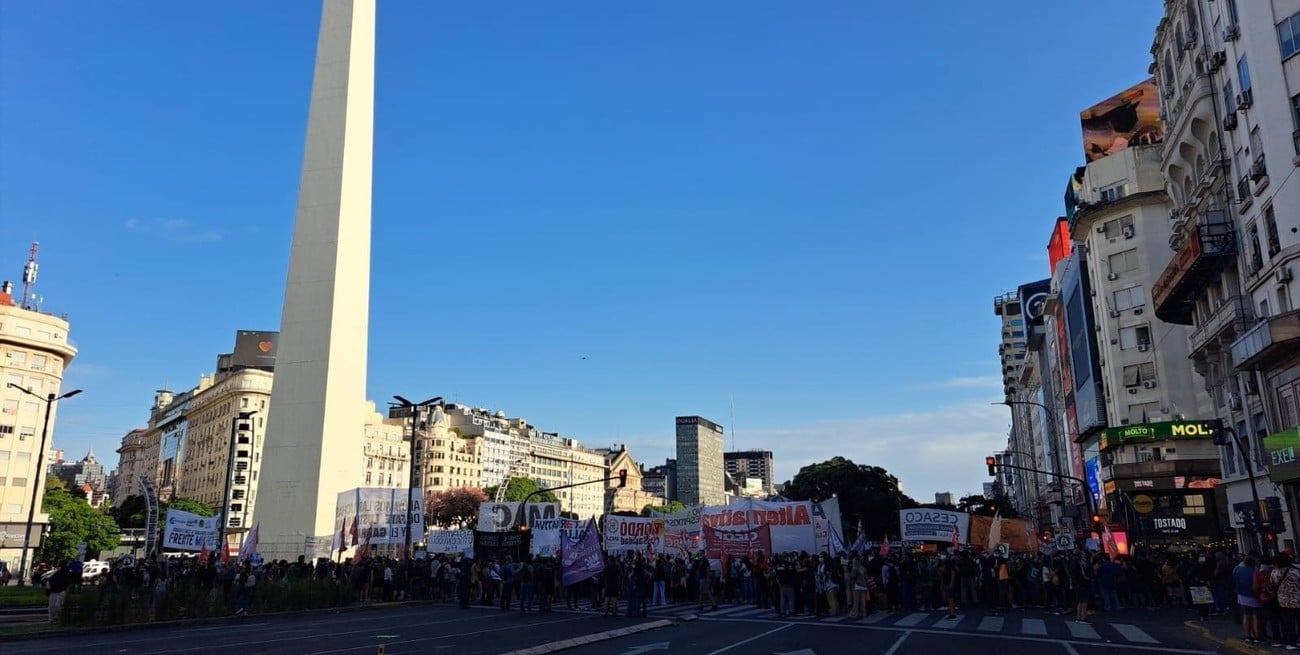 La manifestación se desarrolló en la intersección de las avenidas 9 de Julio y Corrientes, uno de los puntos más transitados de la capital argentina. Allí, agrupaciones políticas y sociales avanzaron con un corte parcial de la calzada, lo que generó demoras y desvíos en el tránsito habitual.