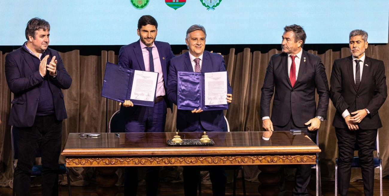 Los gobernadores Pullaro y Llaryora y los ministros de Seguridad de las tres provincias de la Región Centro firmaron acuerdos. Crédito: Gobierno de Santa Fe