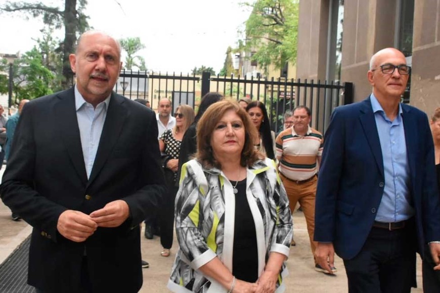 Perotti junto a Cantero en su último día como funcionaria. A su lado, el reemplazo. Crédito: Guillermo Di Salvatore
