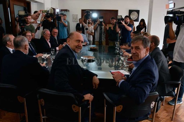 El encuentro tuvo lugar en la Municipalidad de la capital provincial y está encabezada por el intendente, Emilio Jatón, y el gobernador Omar Perotti. Además, participan funcionarios provinciales, locales y jefes de la policía.