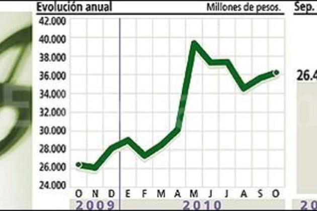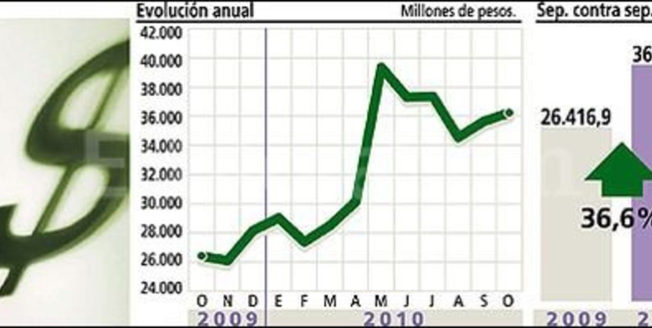 Además, con los 335.336 millonea de pesos recaudados entre enero y octubre, se superó la pauta prevista en el Presupuesto del corriente año, que proyectaba ingresos por 320.000 millones para los doce meses.