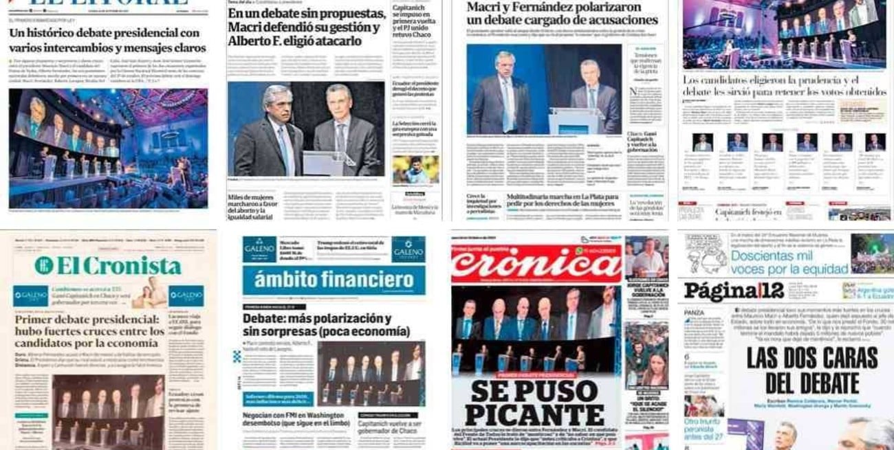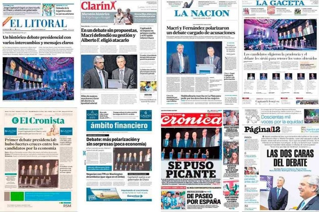Sin lugar a dudas, el primer debate presidencial que se realizó este domingo en la ciudad de Santa Fe se lleva todas las miradas de los principales diarios del país. Cada uno a su estilo, reflejaron este primer encuentro de cara a las elecciones generales del 27 de octubre.