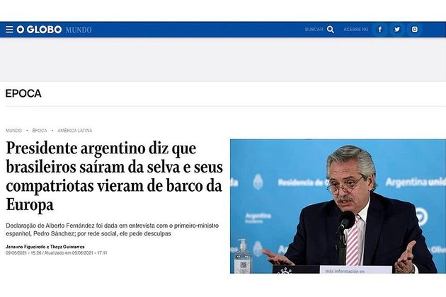 El medio Estadao, en cambio, se mostró muy crítico al sostener que se trató de un “discurso racista”: “Los brasileños vinieron de la selva y los argentinos, en barco desde Europa, dice Fernández en un discurso racista”. Pero luego cambió el foco del artículo cuando el mandatario argentino pidió disculpas por sus polémicos dichos.