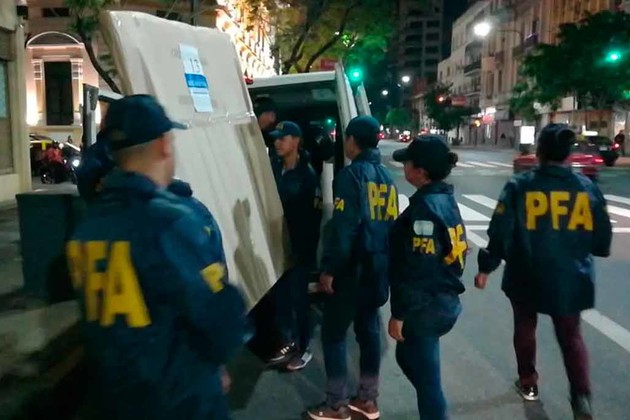 El operativo, que concluyó hacia las 22, se realizó en el departamento que tiene la ex presidenta en el edificio situado en una de las esquinas del cruce de las calles Juncal y Uruguay, desde donde fueron retirados los cuadros, que estaban numerados y envueltos para su traslado.