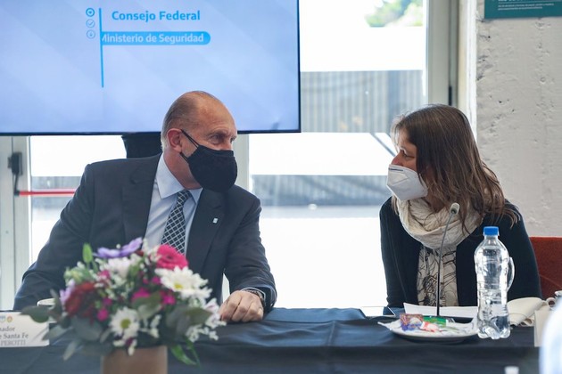 El gobernador de la provincia de Santa Fe, Omar Perotti, junto con las ministras nacionales de Mujeres, Género y Diversidades, Elizabeth Gómez Alcorta; y de Seguridad, Sabina Frederic; y el ministro de Justicia y derechos Humanos, Martín Soria; encabezó este lunes la Reunión Regional de las Provincias de la Región Centro, del Consejo Federal para la Prevención y el abordaje de Femicidios, Travesticidios y Transfemicidios.