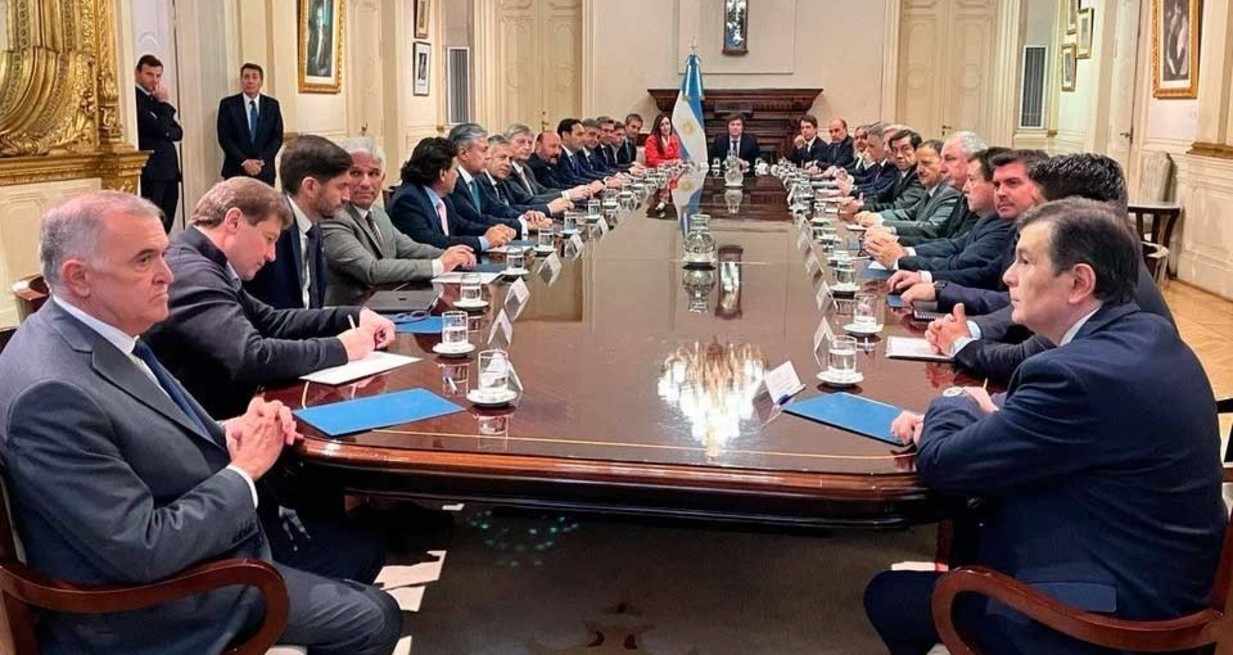 Desde las 12.20, los mandatarios provinciales de todos los colores políticos protagonizaron la primera reunión de la era Milei en la que escucharon los lineamientos del mandatario y también expusieron sus pedidos.