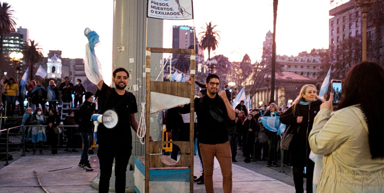 Para ello, continuó, "utilizaron sostenidamente en el tiempo manifestaciones intimidantes en distintas redes sociales -Facebook, Twitter e Instagram- y medios masivos de comunicación, repartiendo folletería y mediante protestas autoconvocadas, planificando, coordinando y difundiendo mensajes de odio, actos intimidatorios y manifestaciones violentas -principalmente en contra de autoridades del actual PEN y sus simpatizantes".