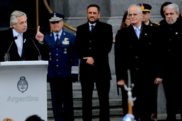 El mandatario estuvo acompañado por los ministros Jaime Perczyk (Educación), Tristán Bauer (Cultura) y Jorge Taiana (Defensa). No se hizo presente la vicepresidenta Cristina Fernández de Kirchner, que hablará aproximadamente a las 17:30 horas en Avellaneda en un acto de la Central de Trabajadores de la Argentina (CTA) y con quien Alberto Fernández mantiene una puja en el interior del oficialismo.