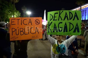 Un grupo de manifestantes se concentró este jueves por la noche en las inmediaciones de la Plaza de Mayo de Capital Federal para protestar en contra del Gobierno Nacional, con consignas en rechazo a la corrupción y la inseguridad, entre otras demandas.