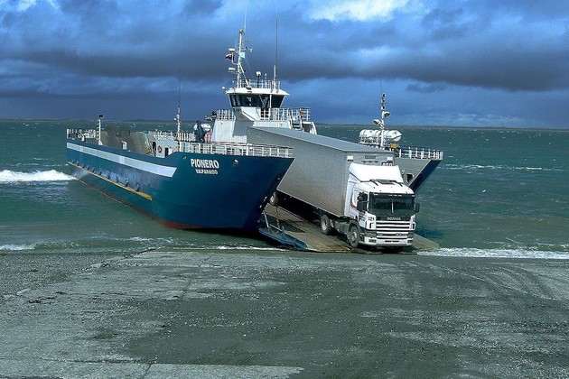 La empresa de ferrys a cargo de unir esas provincias, a través del estrecho de Magallanes, es la chilena Transbordadora Austral Broom.