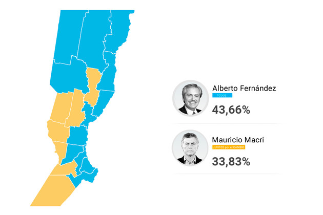 Con más del 98 por ciento de las mesas escrutadas, el Frente de Todos, que postula a Alberto Fernández a la presidencia, le sacó 15 puntos de diferencias a Mauricio Macri (Juntos por el Cambio) en todo el territorio nacional. Misma suerte corrió el oficialismo en la provincia de Santa Fe con 43,66% para la fórmula justicialista y un 33,83% para el binomio conformado por el actual presidente y el senador nacional Miguel Ángel Pichetto.