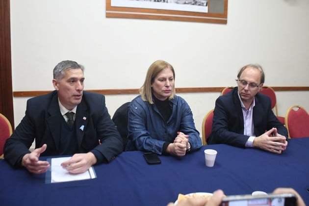 Olivares, junto a Saglione y la vicegobernadora Scaglia. Foto: Flavio Raina.