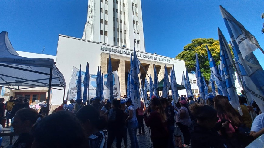 Organizaciones sociales apostadas en la explanada de la municipalidad reclaman que se declare la emergencia alimentaria