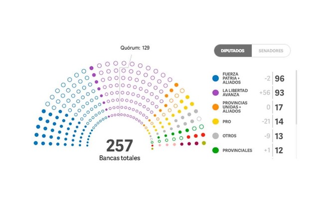 La Libertad Avanza junto a sus aliados serán la primera minoría en la Cámara de Diputados con un centenar diputados, pero deberá hacer acuerdos con otros bloques dialoguistas para poder sancionar las leyes.