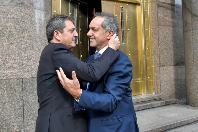 El precandidato presidencial de Unión por la Patria Sergio Massa y el embajador argentino en Brasil, Daniel Scioli, se reunieron este jueves en el Ministerio de Economía, tras el complicado cierre de listas del oficialismo.