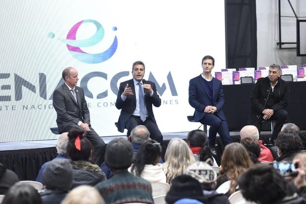 Acompañado por Claudio Ambrosini, titular del Ente Nacional de Comunicaciones (ENACOM); Martín Insaurralde, jefe de Gabinete de Ministros de la Provincia de Buenos Aires; y Nicolás Mantegazza, intendente de San Vicente, Sergio Massa participó del acto de entrega de 3 mil tablets a vecinos en el marco del programa “Conectados con vos”, que promueve el acceso equitativo a equipamientos con el objetivo de facilitar la inserción, integración y desarrollo social mediante el uso de Tecnologías de la Información y las Comunicaciones (TIC).