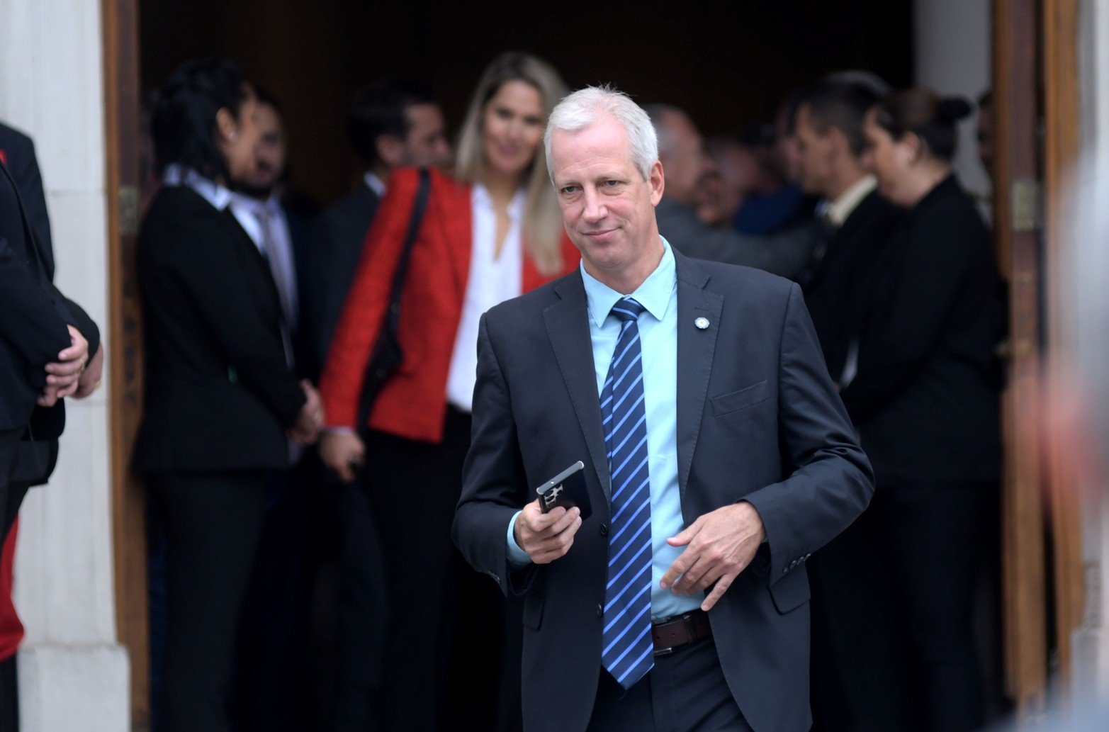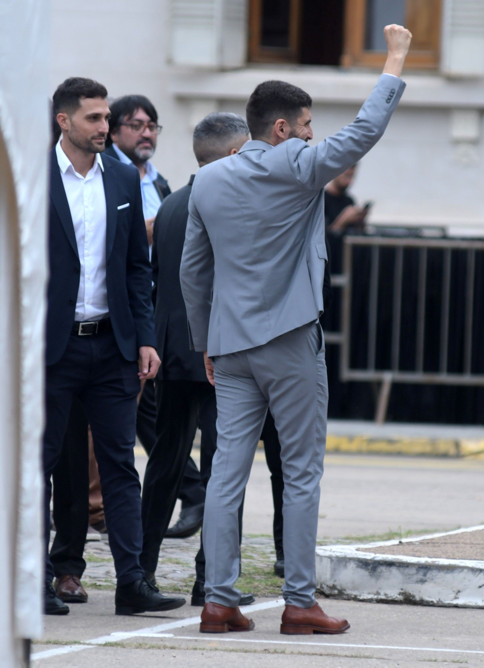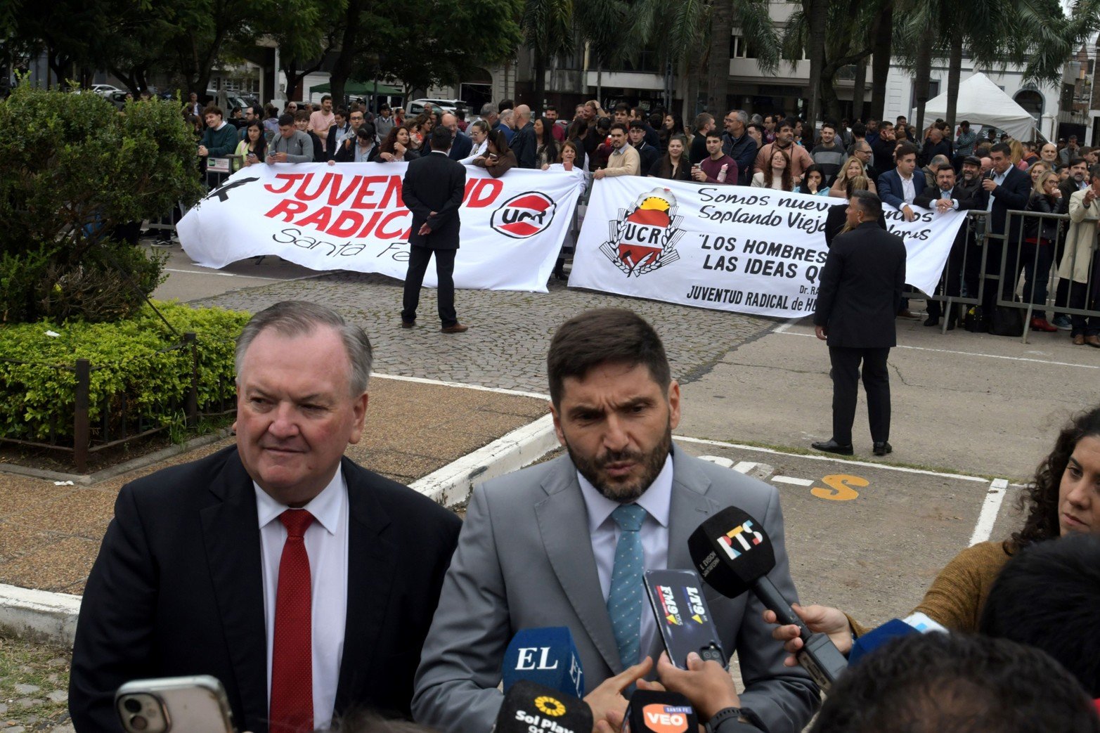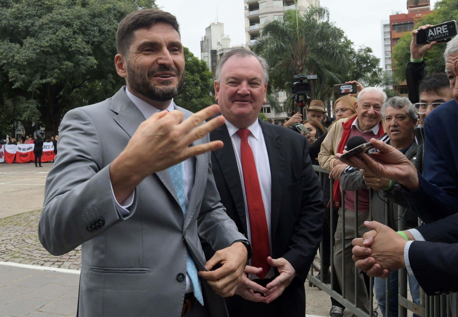 13 / 20 El gobernador Maximiliano Pullaro llegó solo con el Senador provincial Felipe Michlig. Foto: Mauricio Garín