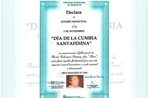 Su discurso fue muy sentido, en su doble rol de representante por el departamento La Capital y líder de la banda Kaniche, pero se olvidó de un detalle: no explicar el por qué de la fecha: el 5 de noviembre se recuerda el fallecimiento de Martín Robustiano Gutiérrez "Chani". gran difusor del género, quien descubrió innumerables talentos y autores, y creó fuentes de trabajo a través del disco. Quienes conocen del tema sostienen que sin su figura no hubiera existido una comercialización masiva.