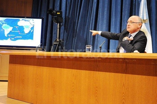 El jefe de la diplomacia argentina exhibió ante la prensa parte del informe entregado al Consejo de Seguridad, que contiene imágenes en las que se destacan las bases militares británicas en las islas de Ascensión, Santa Helena, Tristán de Cunha, Georgias y Malvinas, lo que hace de Gran Bretaña "la potencia militar por excelencia en Atlántico Sur, que controla todo el tráfico marítimo y aéreo“.