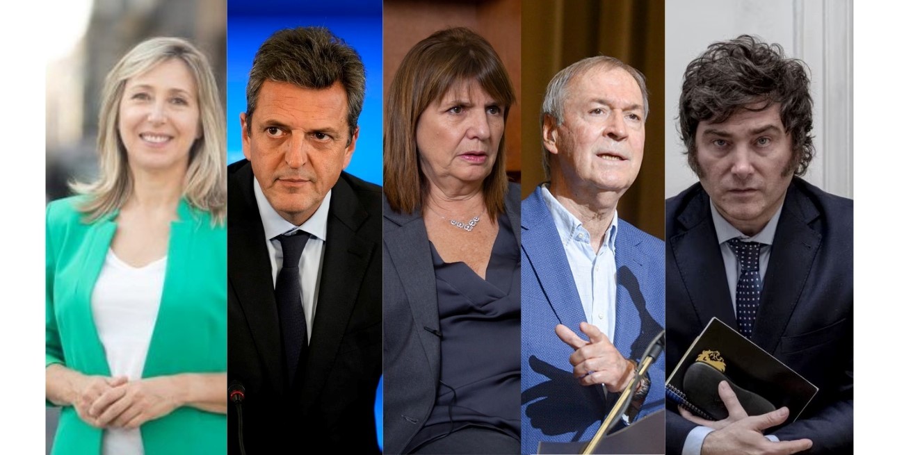 Myriam Bregman, Sergio Massa, Patricia Bullrich, Juan Schiaretti y Javier Milei.