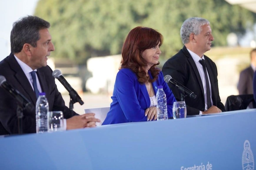Cristina Kirchner acompaño a Sergio Massa en su primer acto luego de se confirmado como precandidato a presidente. Crédito: Prensa Economía