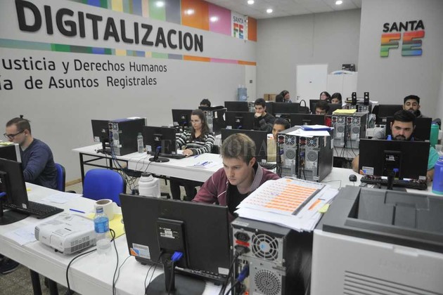 El trabajo se desarrolla en las dos sedes del registro, Santa Fe y Rosario, que cuentan con un laboratorio de captura, tanto para los folios (hojas sueltas) como para los tomos.