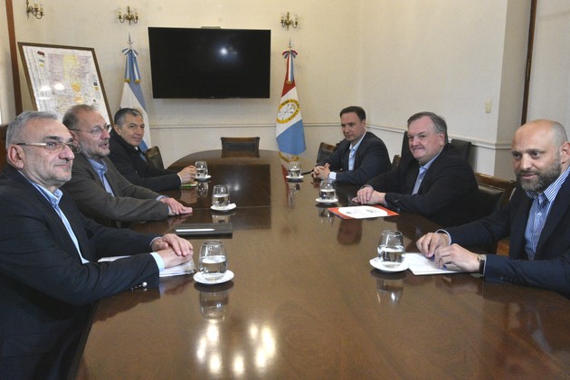 Los ministros de Gestión Pública, Marcos Corach, y de Trabajo, Juan Manuel Pusineri más el senador Alcides Calvo fueron los encargados de recibir a los senadores Felipe Michlig, Lisandro Enrico y Gustavo Puccini, tres de los posibles integrantes del futuro gabinete de no más de diez ministros con que arrancará la gestión Pullaro.