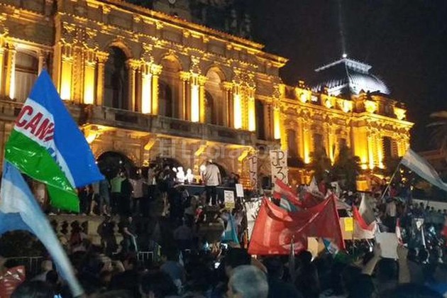 Con vehículos ploteados al frente, la columna partió después de las 20 desde la Plaza Urquiza por 25 de Mayo, hacia el principal paseo público de la ciudad, donde se esperaba esta noche una nueva protesta frente a la Casa de Gobierno.