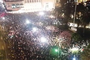 Poco antes de la medianoche, un grupo regresó al lugar de los incidentes para entonar el Himno nacional.
