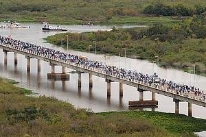 El 25 de abril de 2010 unas 18 mil personas rechazaron en el puente internacional a Fray Bentos el fallo de La Haya que benefició a Botnia-UPM. Foto: EFE-Archivo El Litoral