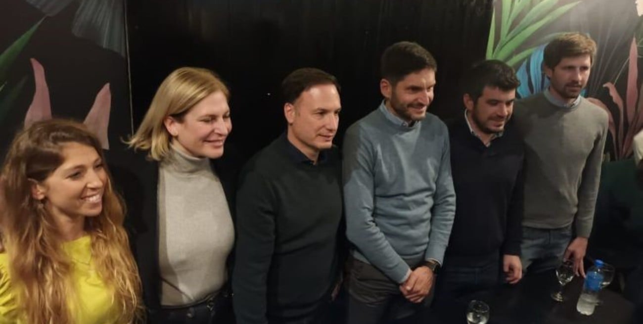 En una mesa de triunfadores, Pullaro y Scaglia estuvieron acompañados por el senador Lisandro Enrico; el intendente Leonel Chiarella (ambos candidatos a la reelección); el aspirante a concejal Santiago Meardi y la postulante a una banca en la Cámara de Diputados, Sofía Galnares.