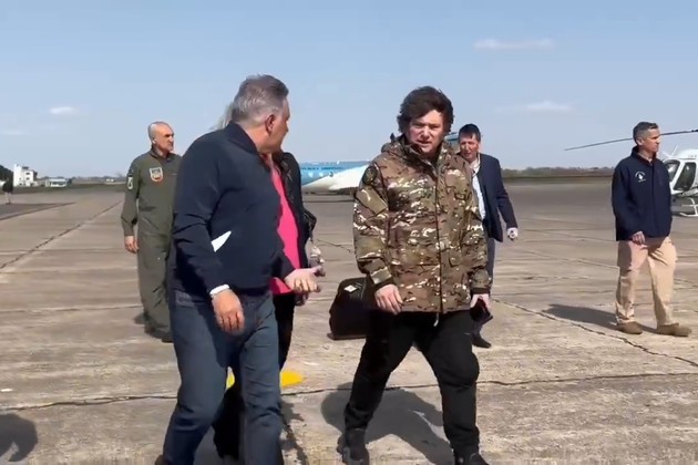 Luciendo ropa de fajina, Milei supervisó con el mandatario cordobés y sus funcionarios las tareas de asistencia y rescate por los incendios en las Sierras. Posteriormente sobrevolaron los incendios, que llevan arrasadas más de 16 mil hectáreas.