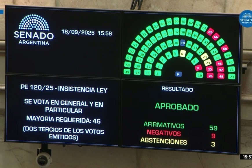 La Cámara de Senadores insistió con la ley n° 27.794, vetada por el presidente Javier Milei que modifica el régimen de distribución de los Fondos de Aportes del Tesoro de la Nación a las provincias. El resultado fue 59 votos afirmativos, 9 negativos y 3 abstenciones.