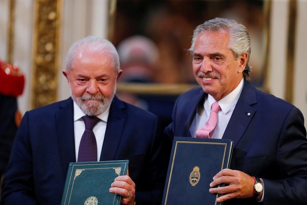 En las últimas horas, Lula y Fernández publicaron un artículo conjunto en el que sostuvieron la decisión de "avanzar en las discusiones sobre una moneda sudamericana común que pueda usarse tanto para los flujos financieros como comerciales".