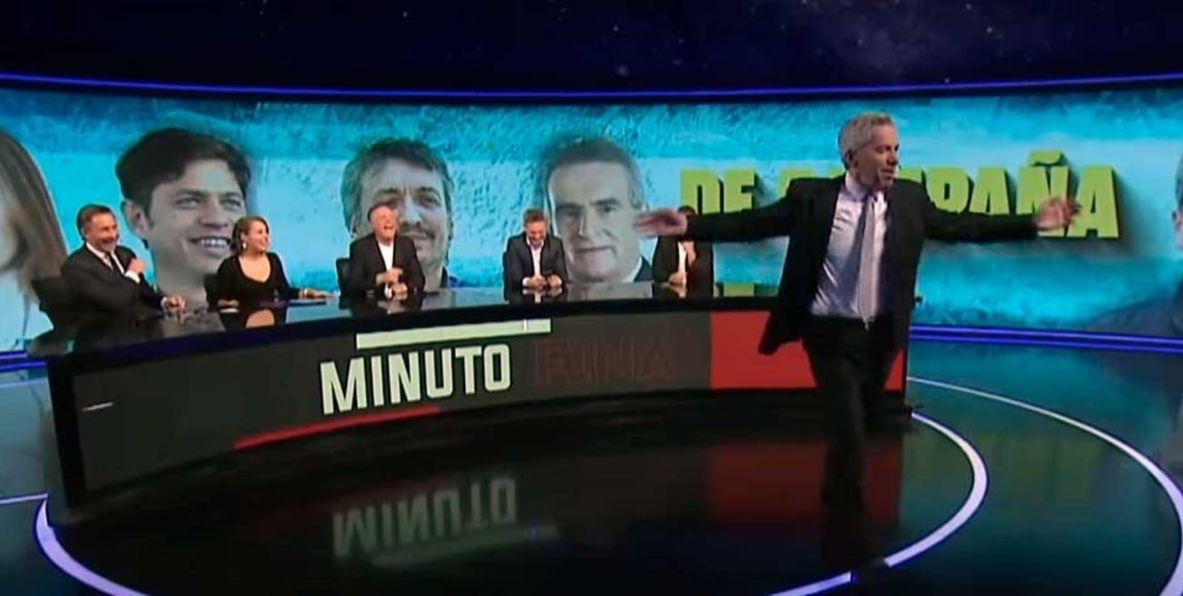 Interrumpió el vivo, se metió en medio del estudio y comenzó a saludar a los panelistas. Luego, propuso imitar a uno de los conductores de ese canal (Pablo Duggan).
