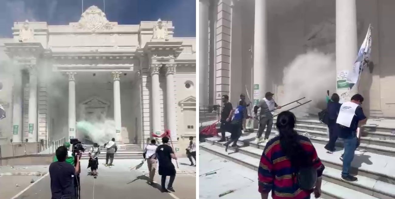 Según pudo saber El Litoral, los violentos rompieron la puerta del edificio y en el enfrentamiento con la policía habría ingresado gas lacrimógeno al Hall de la Legislatura.