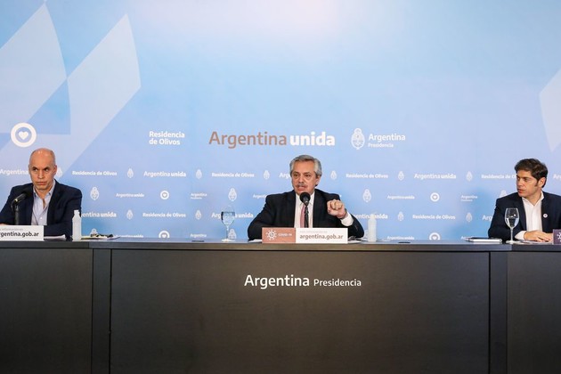 Así lo anticiparon fuentes oficiales, que precisaron que el mandatario nacional realizará el anuncio de extensión del aislamiento obligatorio este viernes a las 12.00 junto a Kicillof y Rodríguez Larreta desde la Quinta Presidencial.