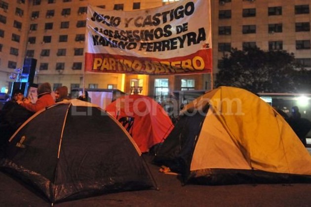 Organizaciones sociales y políticas de izquierda realizan desde anoche una vigilia frente a los tribunales de Comodoro Py por el juicio por el crimen del militante Mariano Ferreyra a manos de una patota sindical, que habría atacado instigada por el dirigente de la Unión Ferroviaria José Pedraza, acusado de homicidio calificado.