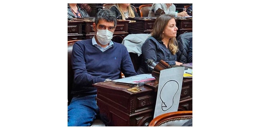 Al pie de su banca el legislador kirchnerista Rodolfo Tailhade pegó un papel con un dibujo tomado de Los Simpsons, cuya referencia es la "dignidad".