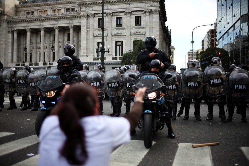 Tras la votación, se intensificó la tensión entre los manifestantes, organizaciones políticas y agrupaciones sindicales que protestaban afuera del Congreso con los agentes de seguridad que desplegaron un fuerte operativo. Aunque, luego de algunos minutos, el grueso de la protesta se dispersó sin incidentes.