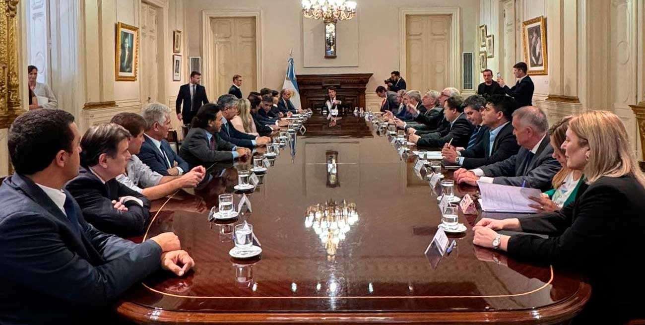 El Gobierno nacional recibió a todos los gobernadores en una extensa reunión en Casa Rosada, donde se avanzó con presentar y aprobar en el Congreso una nueva Ley de Bases, más acotada con menos de 300 artículos, y la restitución del Impuesto a las Ganancias como moneda de cambio, lo que implica una masa aproximada de 6.000 millones de dólares anuales para reforzar las finanzas de las provincias.