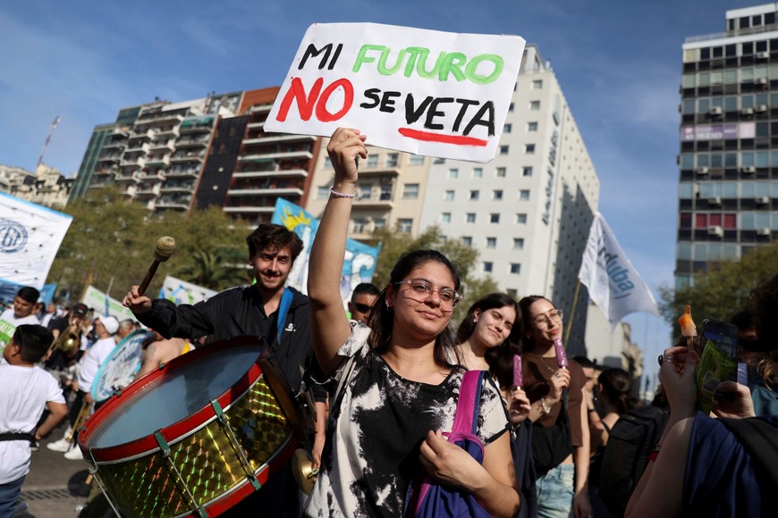 Mientras Diputados se aproxima la primera votación sobre los vetos, comienza en Buenos Aires la Marcha Federal convocada por diversos sectores universitarios que irá desde la Facultad de Derecho de la UBA hasta la plaza del Congreso. Fotos: REUTERS / Francisco Loureiro.