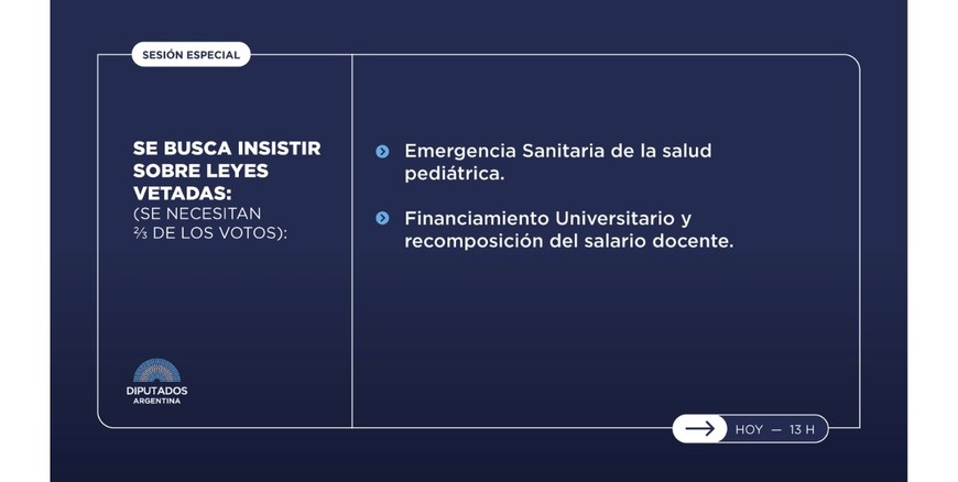 Luego de un cuarto intermedio para revisar la forma de debate y votación, la oposición ampliada logró lhabilitar el tratamiento de los vetos a las leyes de emergencia en pediatría y de financiamiento universitario con más de los dos tercios de los presentes.