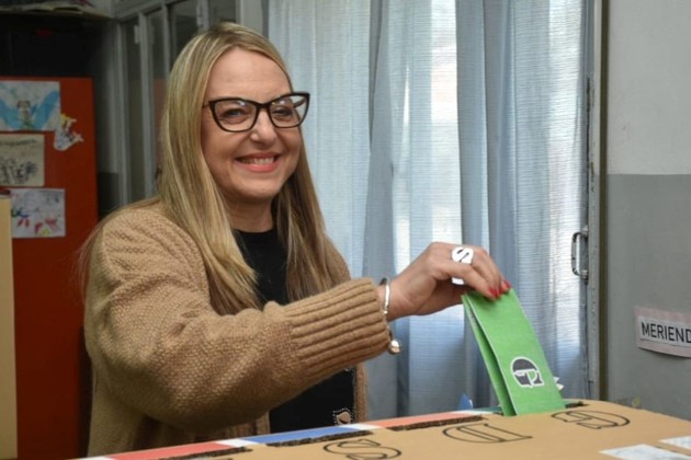 Silvia Cian, candidata a concejal de la ciudad de Santa Fe por la lista “Santa Fe Puede”, votó esta mañana a las 12 en la Escuela Nicolás Avellaneda, en Santiago de Chile al 2900.