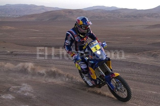 En motos, Coma superó una complicada etapa de dunas, mucho polvo y destreza en la navegación para alcanzar el desértico puerto del Arinca en la frontera con Perú.